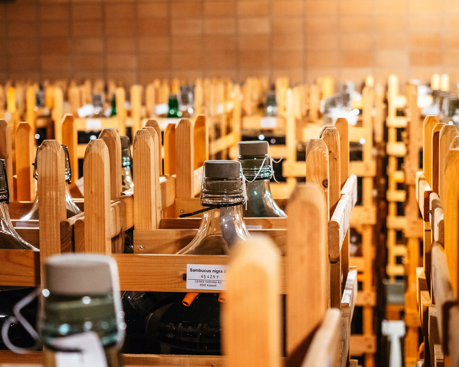 Die Urtinkturen reifen in geschlossenen Glasflaschen bei konstanter Temperatur in einem abgedunkelten Keller. Diese ruhige Lagerung sorgt dafür, dass die Urtinktur ihr volles Aroma und ihre vollständige Wirkkraft entfaltet – das Wesen der Pflanze drückt sich darin aus.