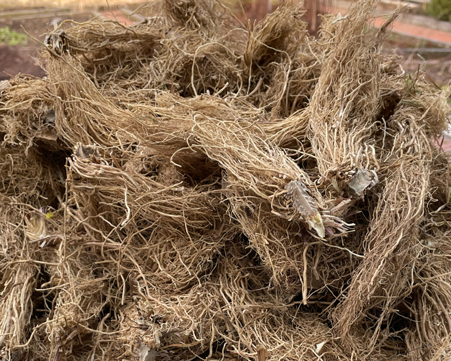 Le caractère de la plante change du tout au tout au niveau de sa racine. D’innombrables racines minces et longues sont accrochées à son rhizome de l’épaisseur d’un pouce. Une fois déterrée et lavée, la racine ressemble à une longue barbe blanchâtre aux poils quasiment droits. La racine impressionne par sa plénitude et sa construction simple en parallèle ; les racines se blottissent les unes contre les autres. Bien qu’elle soit composée d’une multitude de racines isolées, l’ensemble de la souche procure une impression de calme et d’harmonie. On peut aisément imaginer à quel point la valériane est ancrée dans le sol au moyen de ses nombreuses racines isolées, à quel point elle est capable de se raccorder à la terre et d’évacuer ces énergies qui s’expriment justement dans la subtilité et la tension de ses parties aériennes. Les opinions sont très controversées quant à l’odeur de la racine de la valériane, qui est bien plus intense que le parfum de ses fleurs, mais d’un genre tout à fait différent. Bon nombre de personnes ne la supportent pas, il n’empêche qu’elle possède généralement des propriétés réconfortantes et des actions calmantes.