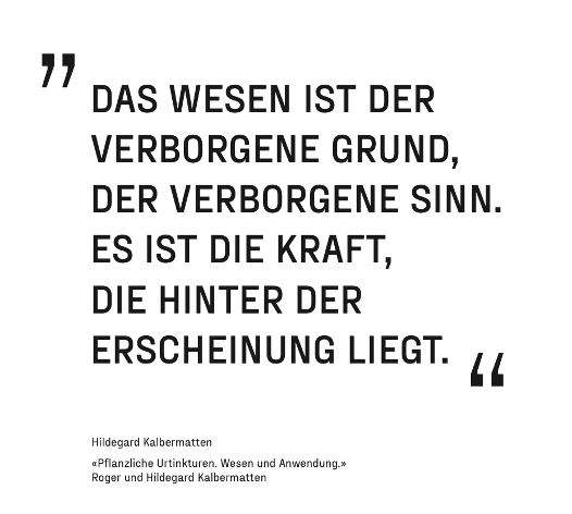 Keine andere Zubereitung gibt das Wesen der Heilpflanze so klar wieder wie eine Urtinktur – vorausgesetzt, ihre Qualität ist hoch. Das Heilpflanzenwesen zeigt sich besonders im Geruch und im Geschmack der Zubereitung. Die Beziehung zwischen Geruch und Wesen wird beispielsweise im französischen Begriff «huiles essentielles» für ätherische Öle deutlich, was so viel wie „wesentliche Öle“ bedeutet. Nur die Urtinktur kann – bei guter Qualität – den Geruch und Geschmack der Pflanze in möglichst reiner Form bewahren.